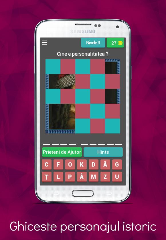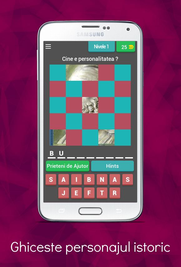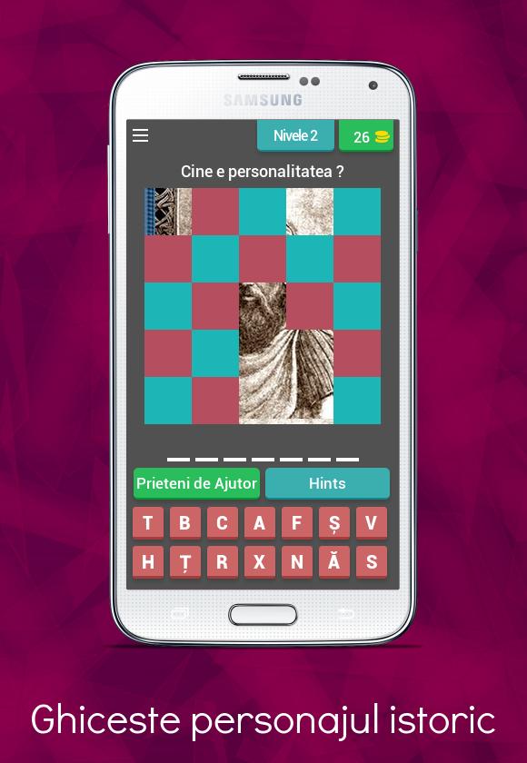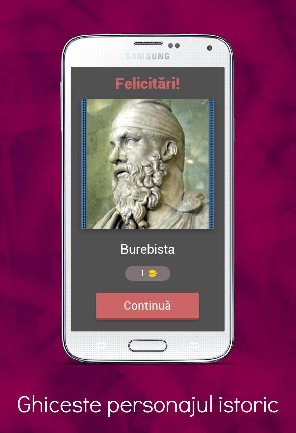 " Ghiceste Personajul Istoric " é um jogo do tipo trivia, no qual você precisa adivinhar os nomes de personalidades muito importantes na história de nosso país: governantes, reis, ministros e líderes de tumultos que agiram para fazer uma Romênia mais próspera e mais feliz.