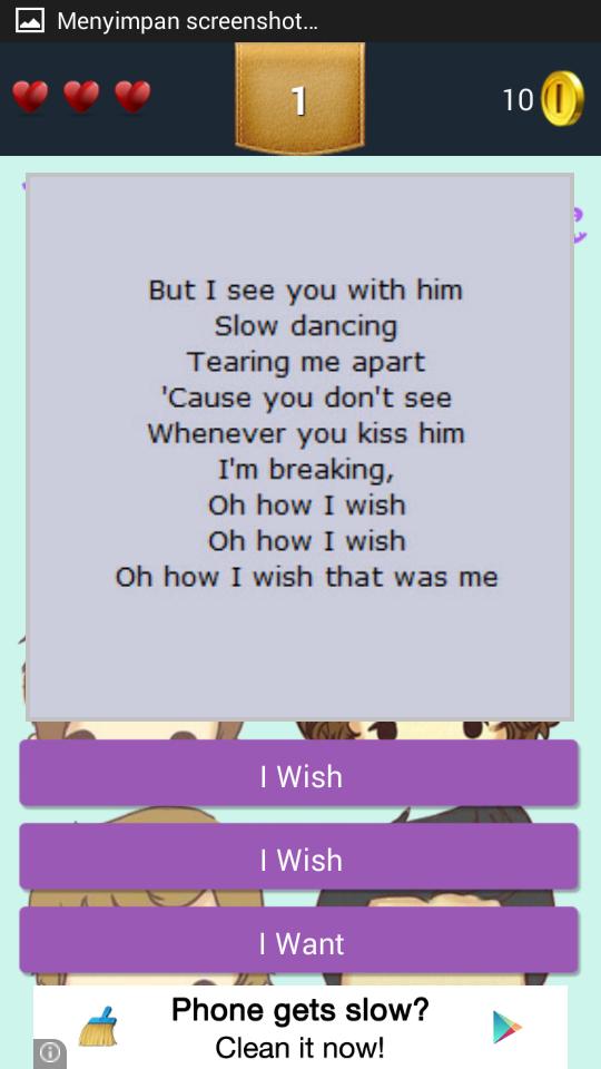 O novo teste é o jogo Lyric de Travia de One Direction. Para jogar este teste, você pode executar a aplicação Dan Jogando o jogo.