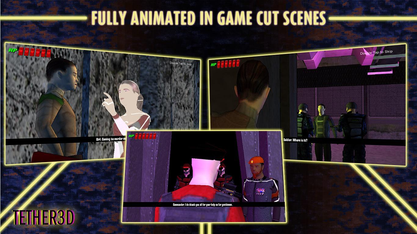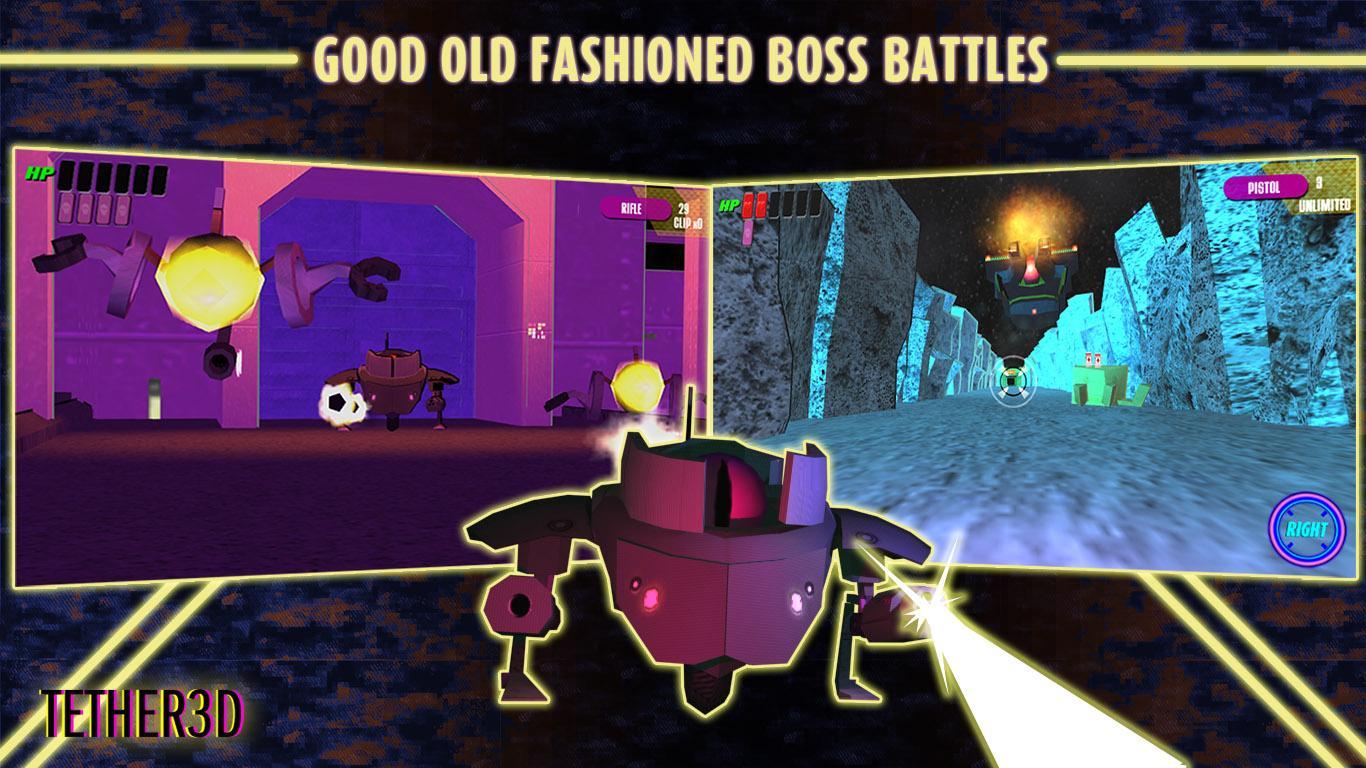 - Tiro baseado na capa: TETHER 3D é um atirador de trilhos, à medida que você passa de ponto a ponto, pode se esconder atrás de objetos para evitar o fogo inimigo.