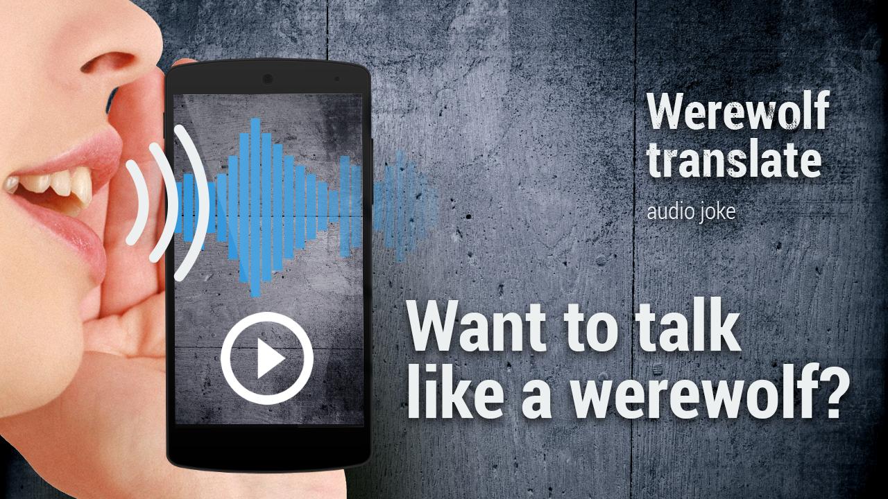 Atenção! Tradução de lobisomem piada de áudio - um simulador, engraçado! Você não poderá se comunicar com os lobisomens na realidade. Lobisomense realmente não existem. E mesmo que houvesse, você provavelmente teria dito isso - RRR! Este aplicativo foi criado para divertir amigos.