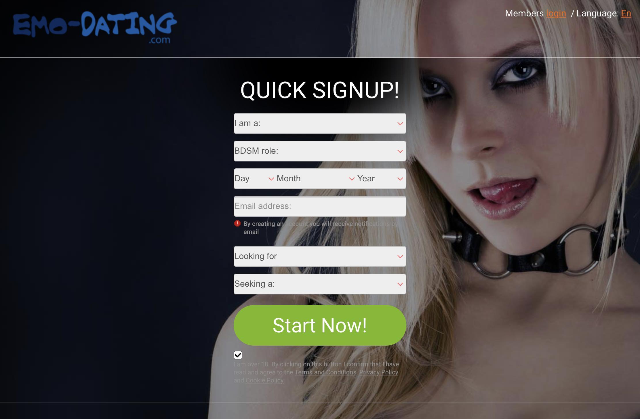Если вы хотите встречаться с Emo Girls и Boys, если вы хотите встретиться с EMO Online, присоединяйтесь к нам бесплатно! Все, что вам нужно сделать, это завершить свой профиль немного о себе, загрузить картинку и удовлетворить свои потребности. Так что, если вы ищете эмо-синглы в Интернете или если у вас есть эмо-фетиш и вы ищете странные и непослушные знакомства с фетишем эмо, Emo-Dating.com-идеальное место для начала. Присоединяйтесь к emo-dating.com на сайте Emo Dating в Интернете! Это не имеет значения для того, чтобы вы ищете серьезные отношения или быстрые и легкие подключения. Emo-dating.com-это сайт Emo Dating номер один для вас!