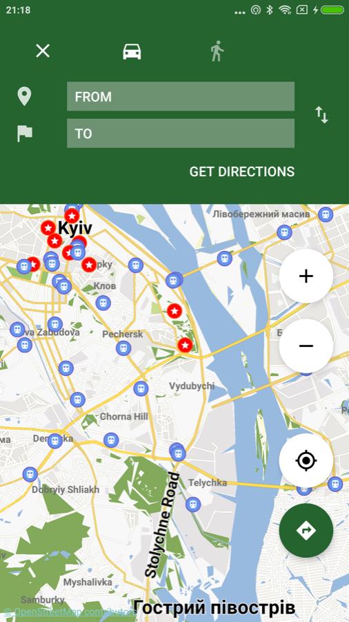 Онлайн и автономная карта Kyiv : достопримечательности, магазины, отели.
