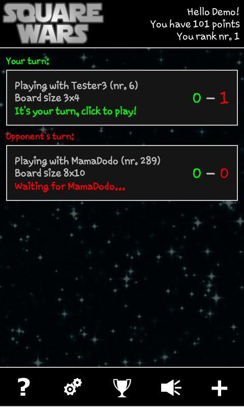 Вызов своим друзьям и случайным противникам сыграть в онлайн -игру в Square Wars . Играйте до 10 игр одновременно.