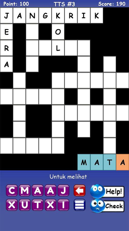 Крестные головоломки или TTS - это классическая игра, в которой мы должны заполнить пустые коробки буквами, которые образуют слово, основанное на указанных инструкциях. В дальнейших событиях эта головоломка также предназначена для вопросов, которые должны быть заполнены числами. Инструкции обычно делятся на категории «горизонтально» и «уменьшены».