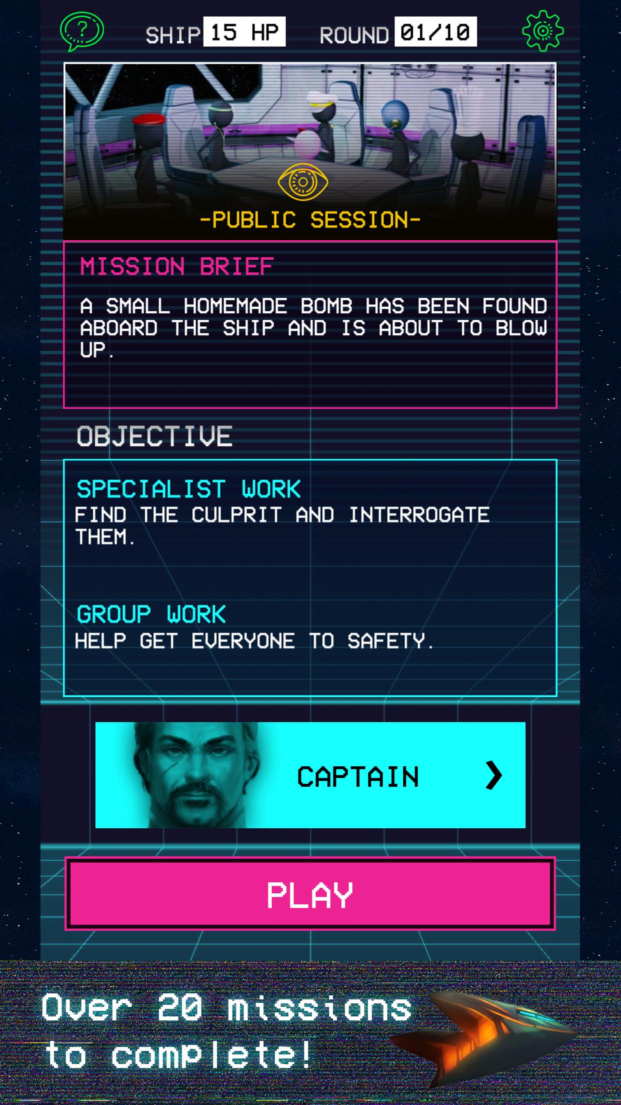 Вы либо человек, защищающий команду, либо инопланетянин, оставшийся под прикрытием в качестве диверсатора, предназначенного для уничтожения всей человеческой жизни. Каждый игрок по очереди выполняет задачи, чтобы скрыть или раскрыть инопланетную форму жизни.