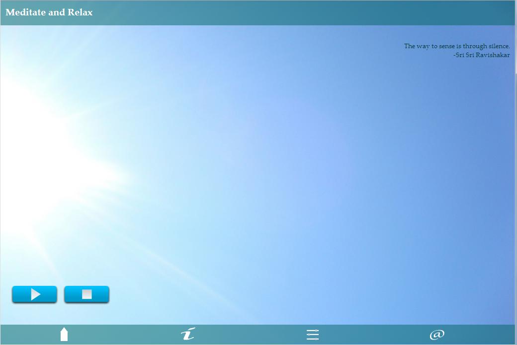 แอปพลิเคชันรวมถึงคำแนะนำเสียงพร้อมด้วยดนตรีเพื่อผ่อนคลายร่างกายและจิตใจของคุณ มีคนพูดอย่างถูกต้องว่าคุณต้องผ่อนคลายมากที่สุดเมื่อคุณไม่มีเวลาผ่อนคลาย เกร็งเนื่องจากการประชุมทางธุรกิจที่สำคัญหรือไปสอบไม่ว่าจะเป็นสถานการณ์ใด ๆ ที่คุณต้องผ่อนคลายและสงบลงเพียงแค่ปรับแต่งเป็นเวลาสิบนาทีนั่งสมาธิและรู้สึกว่าชีพจรของคุณลดลง เวอร์ชันเต็มมีเซสชันที่ยาวนานขึ้น 20 และ 30 นาทีซึ่งช่วยให้คุณลึกลงไปในการทำสมาธิ เพลิดเพลินกับเวอร์ชัน 10 นาทีที่สั้นกว่าฟรี นั่งสมาธิและจบด้วยตัวคุณเองและสภาพแวดล้อมของคุณ
