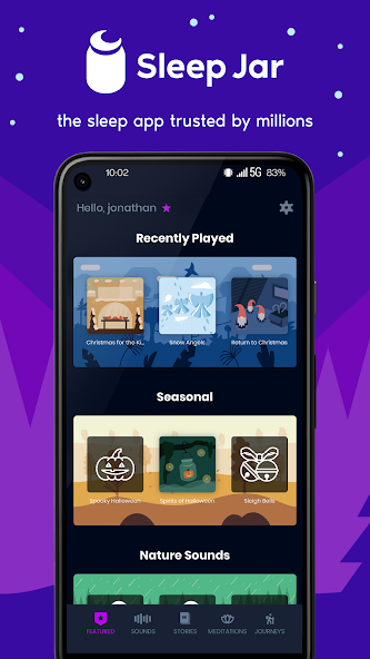 Sleep Jar นำเสนอเสียงการนอนหลับมากกว่า 200 เรื่องเรื่องราวการเดินทางและการทำสมาธิแบบมีไกด์เพื่อช่วยส่งเสริมการนอนหลับที่ดีขึ้นการผ่อนคลายโฟกัสหรือทำให้เกิดเสียงรบกวน