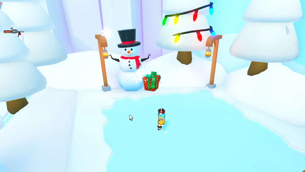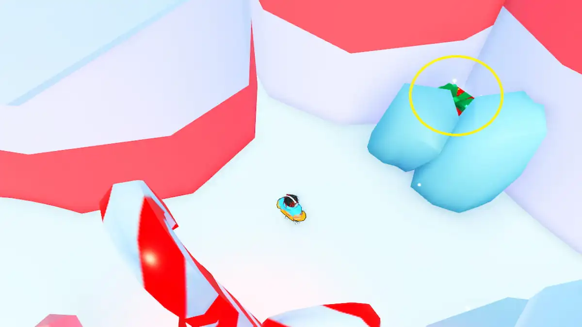 - You can find the present on the left side of the Snow Machine below a white tree in Area 3.