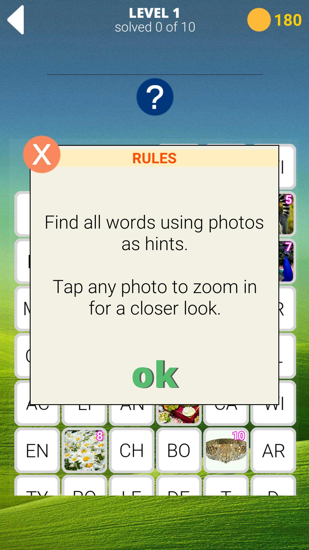 กระบวนการเกมแบ่งออกเป็นสองประเภทแต่ละระดับประกอบด้วยยี่สิบคำบทเรียนของเกมแบ่งออกเป็นภาพถ่ายและคำตอบของพวกเขาที่แบ่งออกเป็นพยางค์งานของคุณคือดูรูปภาพเพื่อเดาและเขียนคำจากพยางค์เมื่อคุณคลิกที่รูปภาพใด ๆ เกมที่ยอดเยี่ยมนี้ถูกสร้างขึ้นเพื่อเล่นใน บริษัท ของเพื่อนครอบครัวและเพื่อน เล่นที่คุณเลือกใน: อังกฤษ, ฝรั่งเศส, เยอรมัน, รัสเซีย, อิตาลีและโปรตุเกส