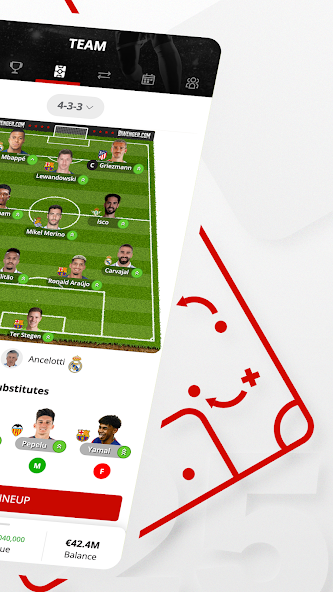 ►จัดการทีมฟุตบอลของคุณ: ทำการเซ็นสัญญาเชิงกลยุทธ์และสร้างผู้เล่นตัวจริงที่สมบูรณ์แบบสำหรับการแข่งขัน La Liga Fantasy Matchday แต่ละครั้ง