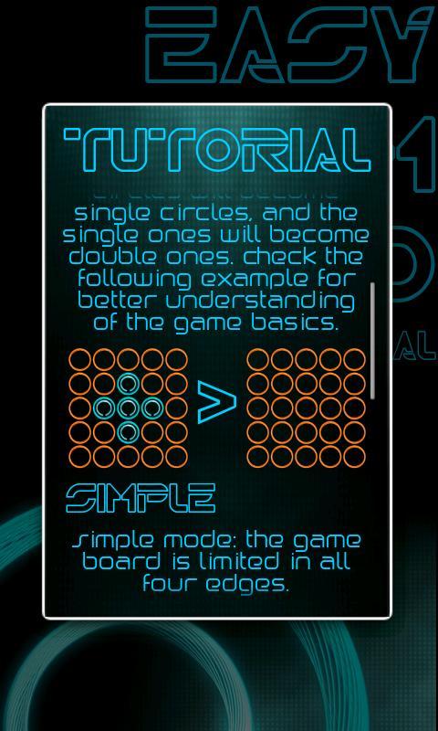 ด้วยโหมดเกมเก้าโหมดและมากกว่า 200 ระดับวงกลมแสงจะทำให้สมองของคุณมีส่วนร่วมเป็นเวลานาน เป้าหมายคือการปิดวงกลมแสงคู่ทั้งหมดโดยเปลี่ยนเป็นวงกลมเดี่ยว มีความยากลำบากสามระดับ: ง่ายปานกลางและยาก นอกจากนี้ยังมีสามโหมดเกม: ง่ายทรงกระบอกและ toroidal; โหมดเหล่านี้จะทำให้เกมท้าทาย!