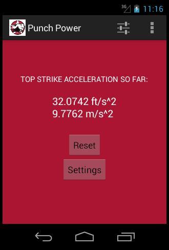 แอปพลิเคชั่น Android นี้เป็นของเล่นเกมและผู้ฝึกสอนการป้องกันตัวเอง ขึ้นอยู่กับว่าคุณต้องการใช้มันอย่างไร ถือโทรศัพท์หรือแท็บเล็ต Android ของคุณไว้และเลื่อนไปอย่างรวดเร็วเหมือนที่คุณจะตีหรือต่อยใครบางคน จากนั้นจะทำให้การชกต่อยหรือการเตะเสียงดัง มันใช้อุปกรณ์เร่งความเร็วในการตรวจจับการเคลื่อนไหว มันจะแสดงการเร่งความเร็วสูงสุดของคุณที่เกิดขึ้นบนหน้าจอในระหว่างการเจาะ/การนัดหยุดงาน ดังนั้นจึงสามารถใช้ในการบันทึกพลังของหมัดของคุณ เล่นกับเพื่อนของคุณเพื่อดูว่าใครสามารถโจมตีได้เร็วที่สุด หรือใช้สำหรับการฝึกอบรมการต่อสู้ (การป้องกันตนเอง) หรือแค่แกว่งไปรอบ ๆ เพื่อความสนุกสนาน สามารถปรับทิศทางการตรวจจับการเคลื่อนไหวและความไวของทริกเกอร์เสียงได้ และคุณสามารถเลือกเสียงที่แตกต่างกัน คุณสามารถผูกอุปกรณ์รอบข้อมือเพื่อใช้งานได้ง่าย เล่นกับแอปพลิเคชันนี้และปล่อยให้จินตนาการของคุณไป ... ตบหัวหน้าของคุณแม่หรือใครก็ตามที่โกรธคุณ;) (อย่าทำอย่างนั้นจริง) เกมนี้ดีสำหรับการบรรเทาความเครียด