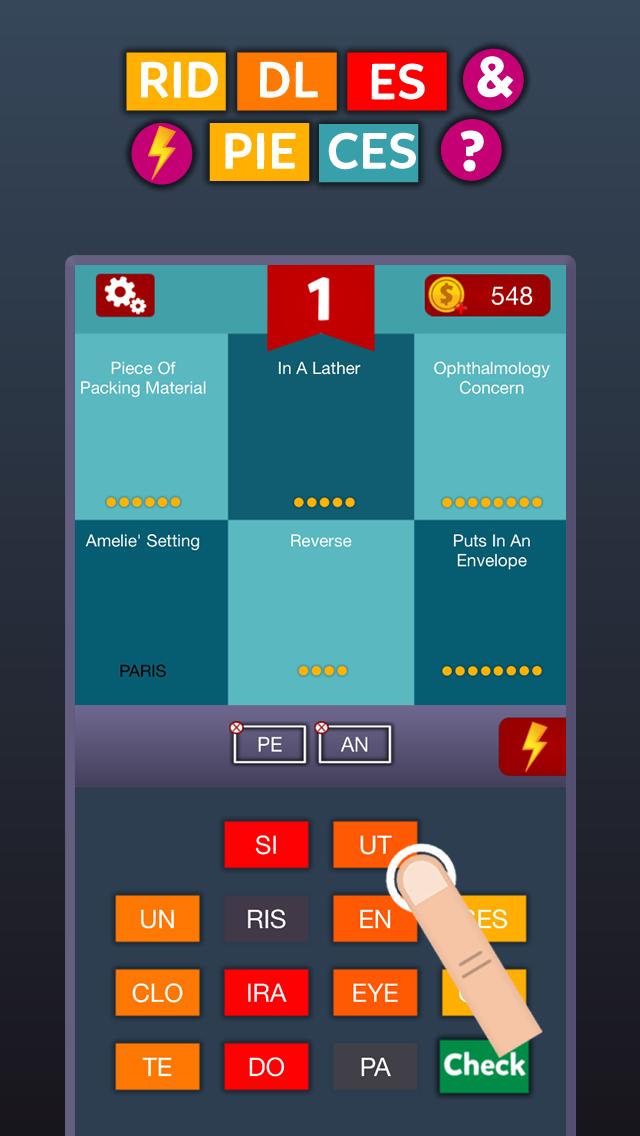 แต่ละระดับมี 6 Riddles และบิต เพียงแค่ดูประโยคและประกอบชิ้นส่วนของคำ