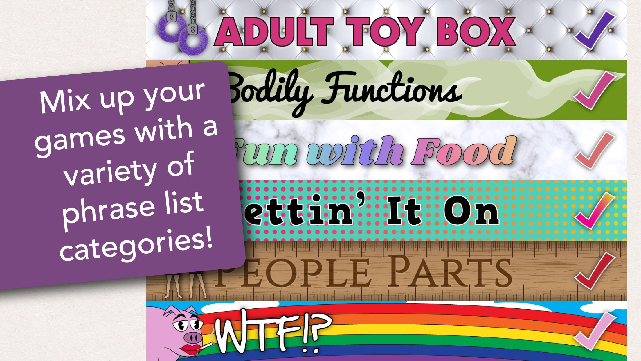 นอกจากนี้ยังมีตัวเลือกบางอย่างในการปรับแต่งประสบการณ์ของคุณ: สลับหมวดหมู่วลีเปิดและปิดเลือกจำนวนผู้เล่น (2, 4, 6, 8 หรือ 10) และตัดสินใจว่าจะใช้ตัวจับเวลารูปวาดหรือไม่ และจำไว้ว่าคุณสามารถขยายการเลือกวลีของคุณด้วยการซื้อครั้งเดียวเพื่อปลดล็อกรายการปัจจุบันและอนาคตทั้งหมด