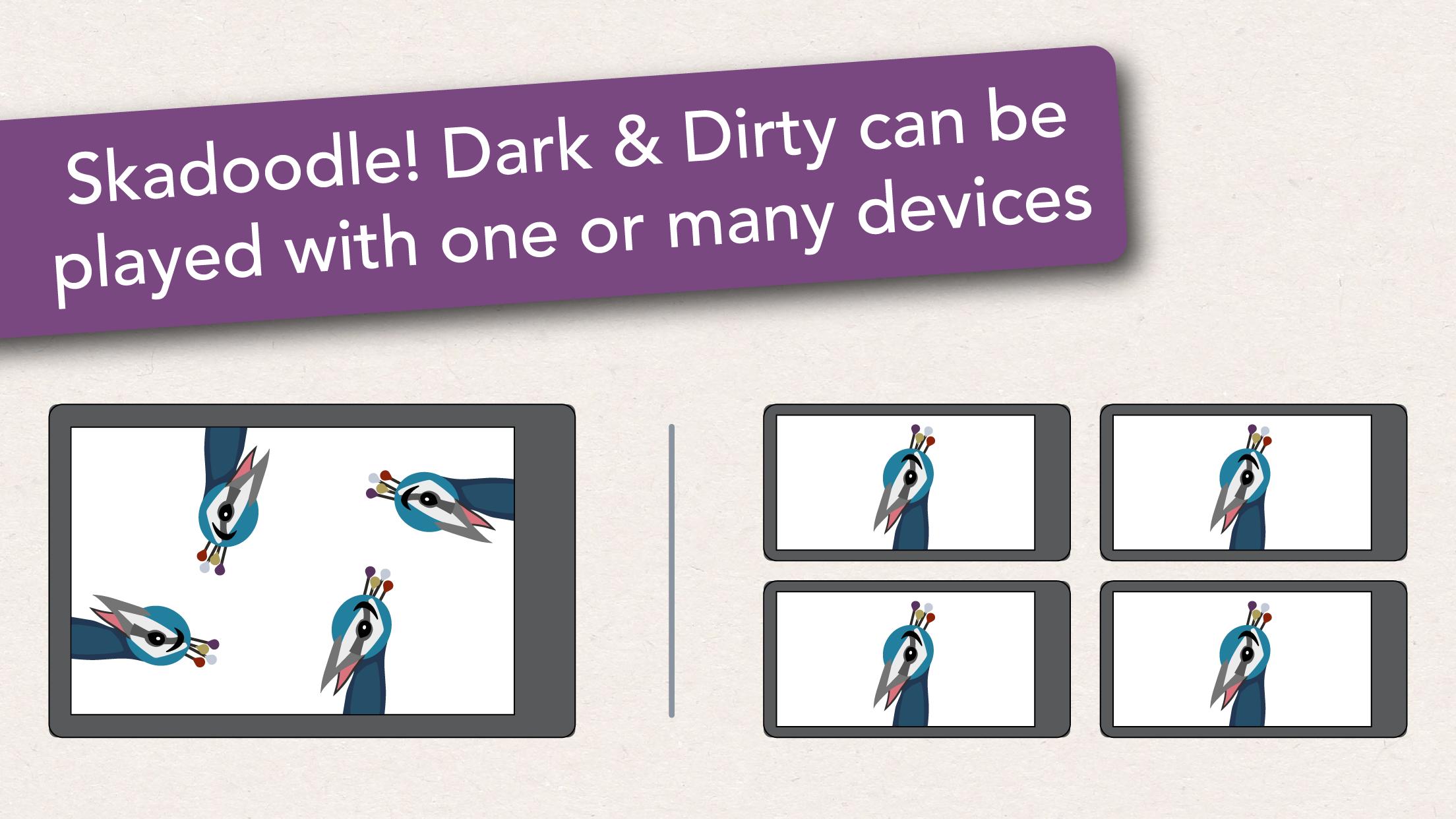 คุณมีอารมณ์ขันที่ป่วยและบิดเบี้ยวควบคู่ไปกับความปรารถนาที่ซ่อนเร้นที่จะแบ่งปันกับครอบครัวและเพื่อนของคุณหรือไม่? แรงกดดันทางสังคมในการรักษาความสงบที่ถูกต้องทางการเมืองจะทำให้คุณผิดหวังหรือไม่? จากนั้นอานม้าแฟน ๆ ผู้เล่นหลายคนในท้องถิ่นและให้เรานำเสนอ Skadoodle! Dark & Dirty - เกมโทรศัพท์ที่น่าตื่นเต้นที่คุณรู้จักและชื่นชอบตอนนี้ด้วยความเป็นผู้ใหญ่มาก