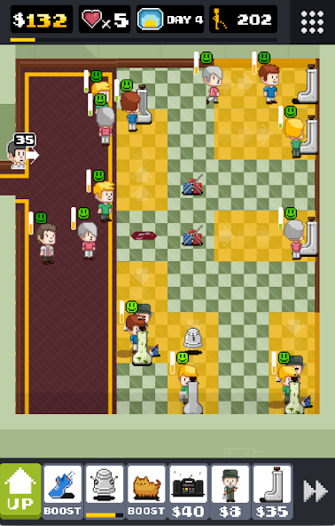 จัดการ การจำลองห้องน้ำของผู้ชายที่บ้าคลั่ง นี้! การเล่น Toilet Guy ก็เหมือนกับการเล่นเกมการจัดการเวลาเช่นเกมร้านอาหาร แต่ในโหมดยาก: