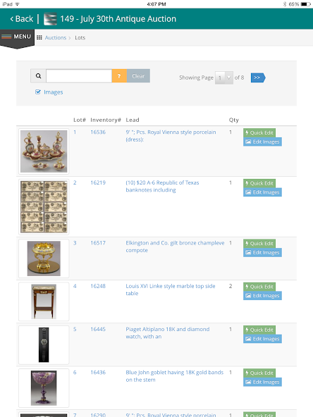 Auction Flex Mobile用于编目,文员等。