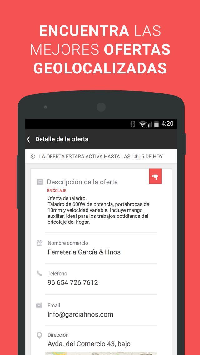 ◉您将了解所有促销活动和优惠,在有限的时间内有效,半径约为2公里。该应用将指导您到同一商店或机构