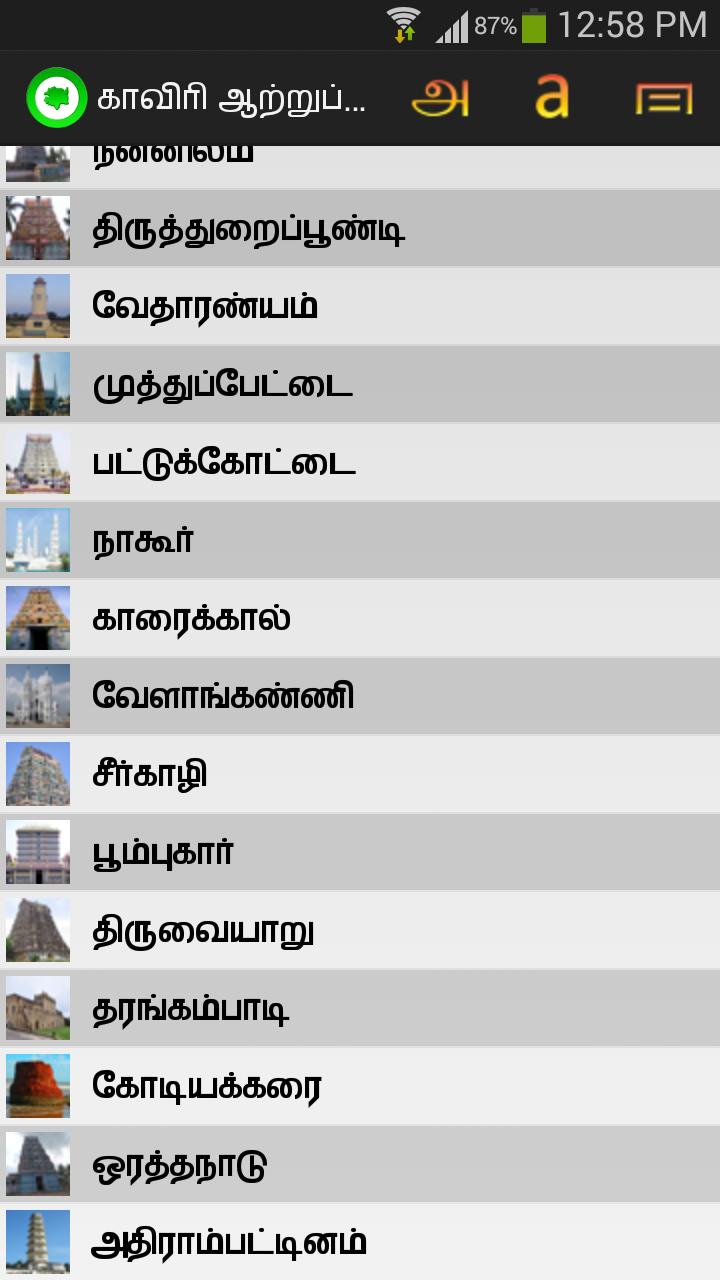 提供了有关Kaveri Delta和Navagraha Temple详细信息的21个城镇和附近地方的信息:
