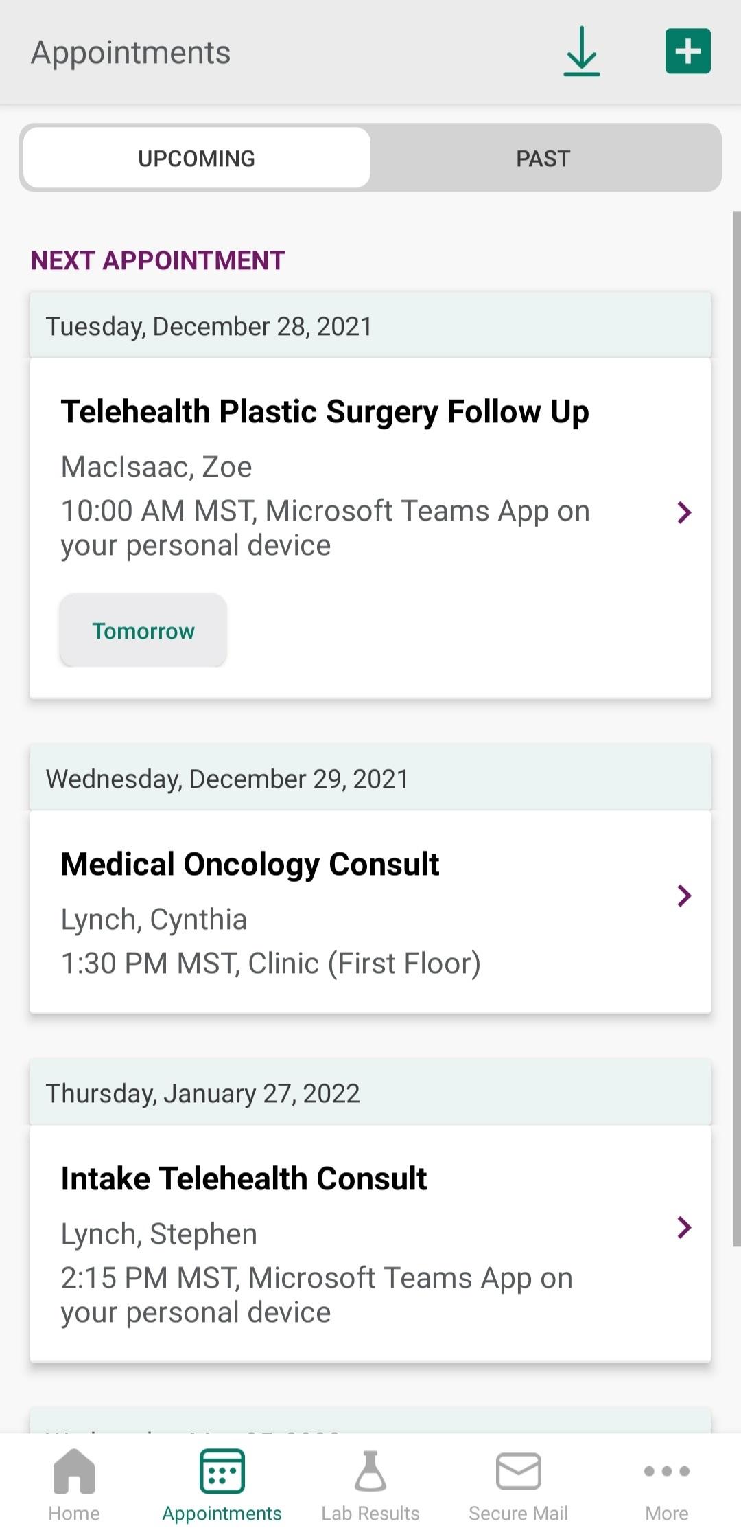 - 通过安全邮件与您的护理团队进行通信。