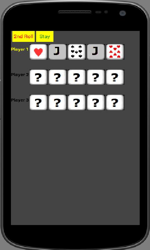 这是高达5个球员的5个Cubilete 。易于使用,并基于Cubilete规则。反过来,球员最多可能会有3圈,具体取决于上一个球员。当玩家想握住(锁定)模具时,他/她只需要触摸它,而在下一个掷骰中,骰子将保持原样;如果他/她想放弃,那就再次触摸死亡以解锁。如果玩家决定留在当前的骰子上并有更多的回合,那么接下来的球员将没有比决定留下的球员的回合。获胜者是最高得分。