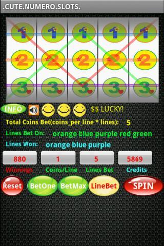五个卷轴,五列列赛可爱的numero老虎机。微调的赌注,有更多机会赢得小小的赢得胜利的机会。赌至25分。出色的图形,美丽的声音效果。