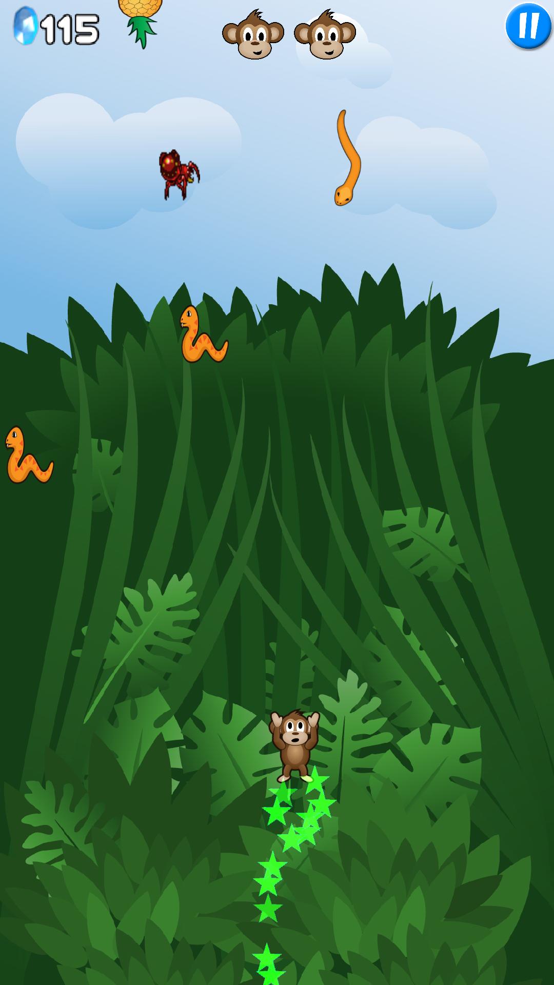 帮助猴子收集水果。不要让他们跌倒!另外,请注意居住在丛林中的危险动物,等待猴子出现!