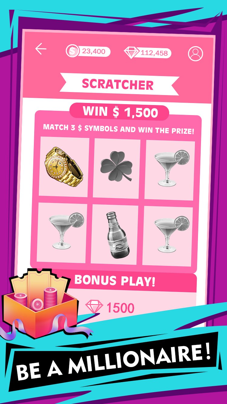 玩家可以使用受我们的免费赌场游戏启发的刮刮卡,如乐透或旋转等。每张刮刮卡都有自己的价格、不同主题的奖励,试试你的运气来赚取更多虚拟货币!点击旋转轮即可查看您将获得多少奖励。您可以继续玩游戏并收集更多虚拟货币以增加机会。您赚取的虚拟货币将存入您的余额中。