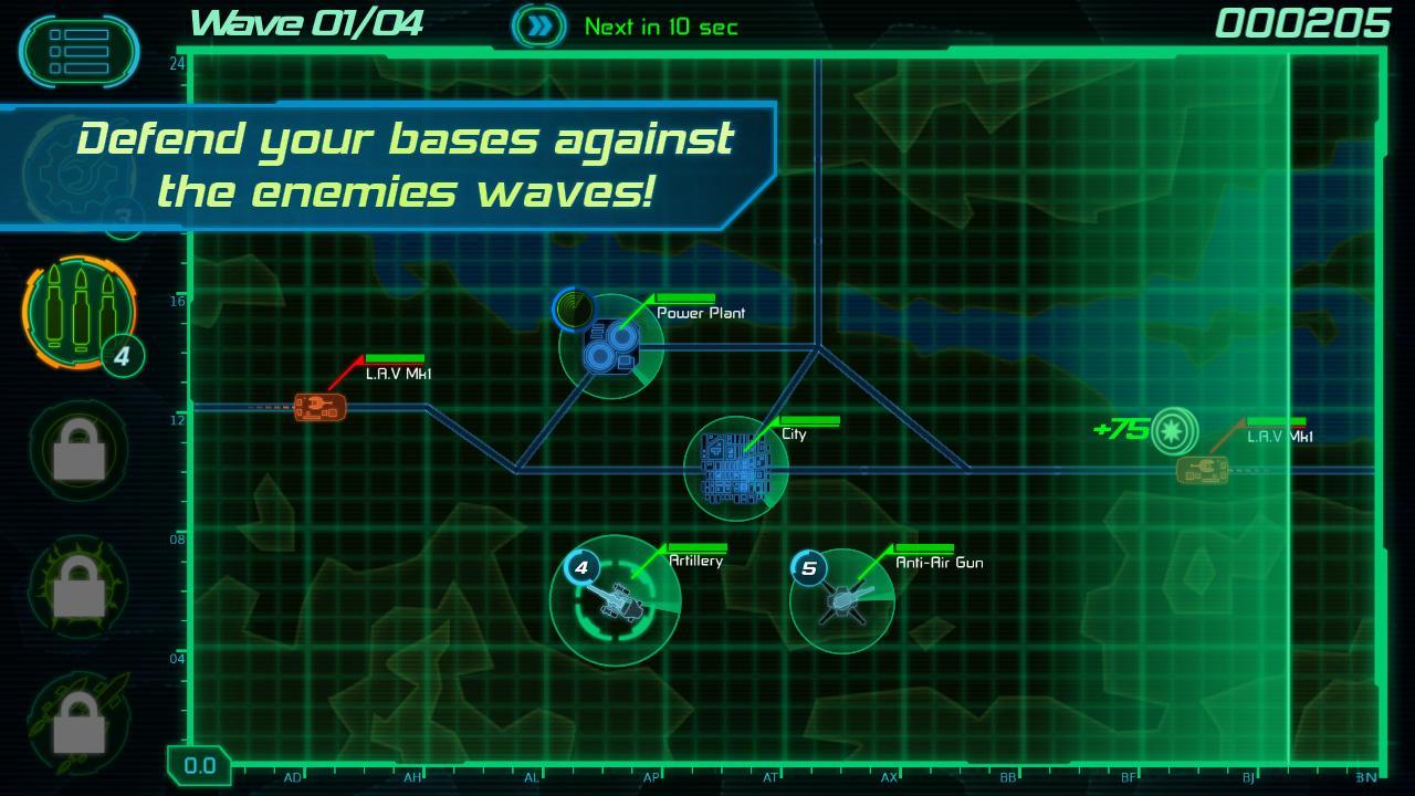 借助您的雷达,识别并定位敌人。选择合适的武器并在敌人到达基地之前销毁它们