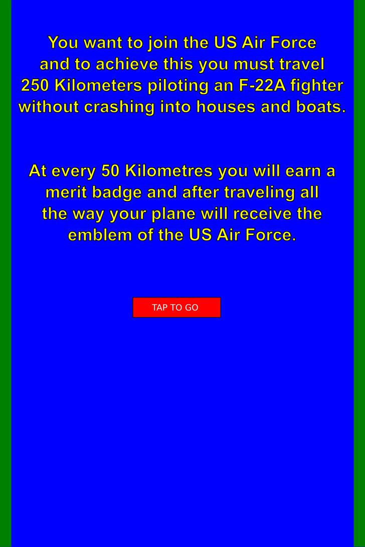 您想加入美国空军并实现这一目标,必须行驶250公里,驾驶F-22A战斗机,而不会撞到房屋和船上。