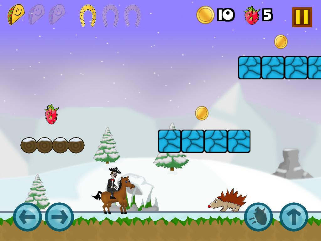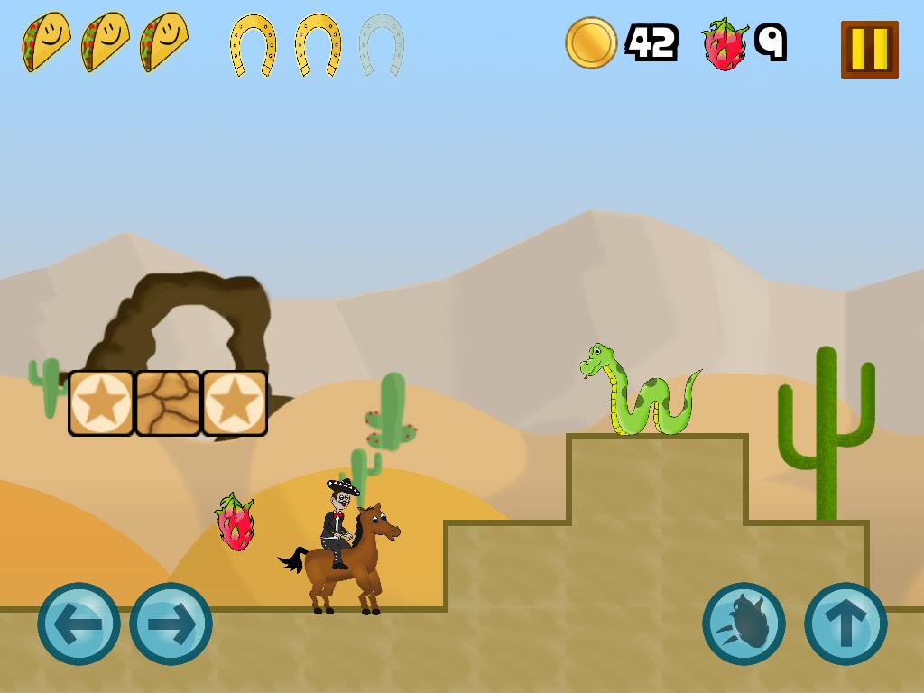 炸玉米饼和他的朋友们和平地生活在疾驰谷。突然,公主被匪徒绑架。加入炸玉米饼进行令人兴奋的救援任务。跳跃,收集硬币和马蹄铁,抓住电力,发射“ Pitahayas”(龙果),并击败敌人,将公主安全地带回家。