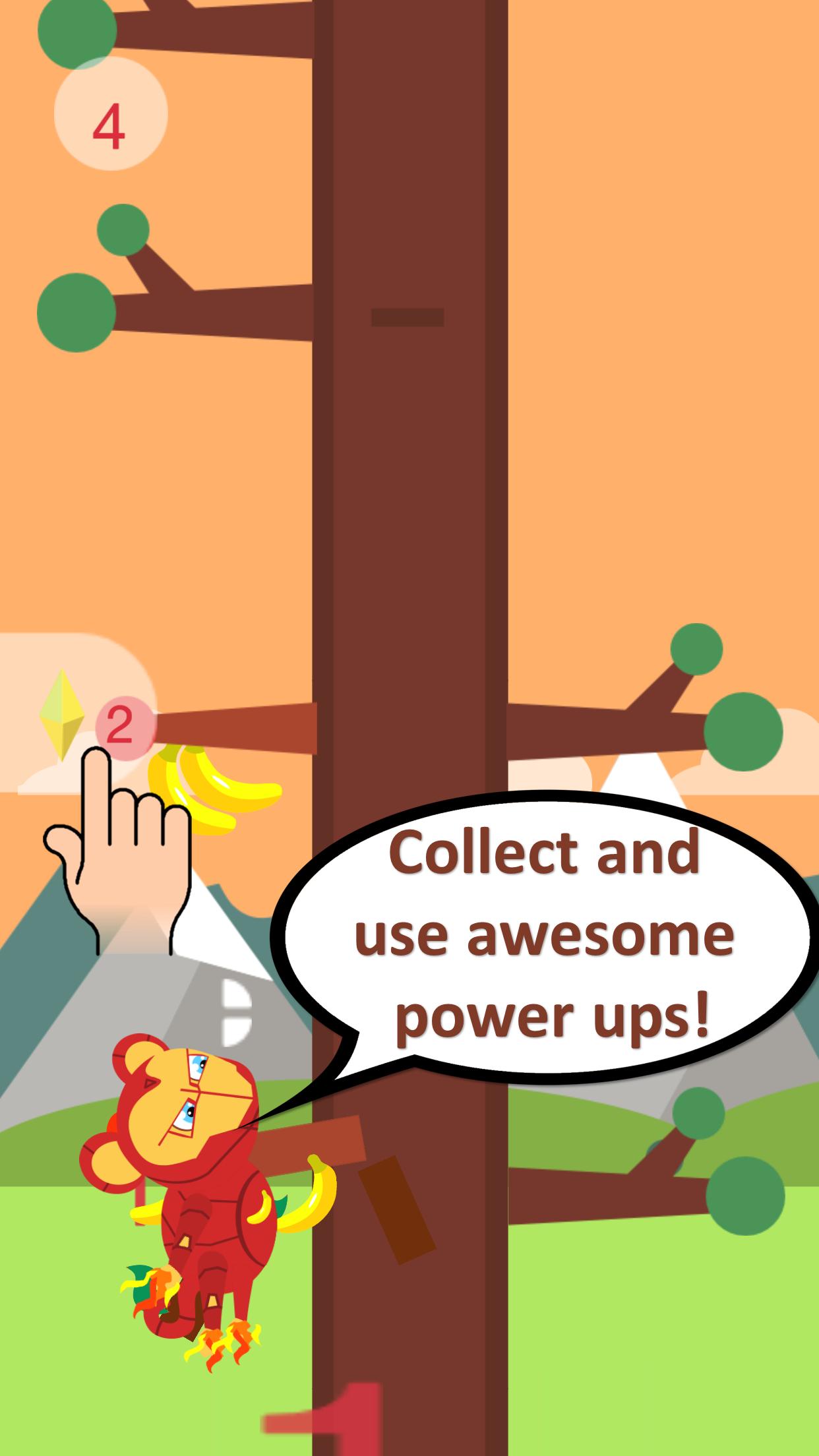现在,您必须帮助Swift Chimpanzee登山者迅速爬上树干,并保护周围所有徘徊的敌人。像黑猩猩火箭之类的力量上升,可以帮助Bonobo在攀登比赛中稳定和更快地收集优势。
