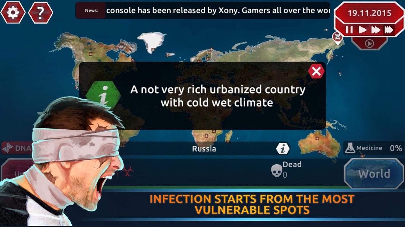 如何播放:选择三个级别之一:容易,正常或硬,选择该领域并开始进化您的病毒或防病毒软件。请记住,在贫困国家,污染物的传播非常快,由于药物和卫生水平较低,与它们战斗更加困难,因此您的防病毒软件必须得到很好的发展。