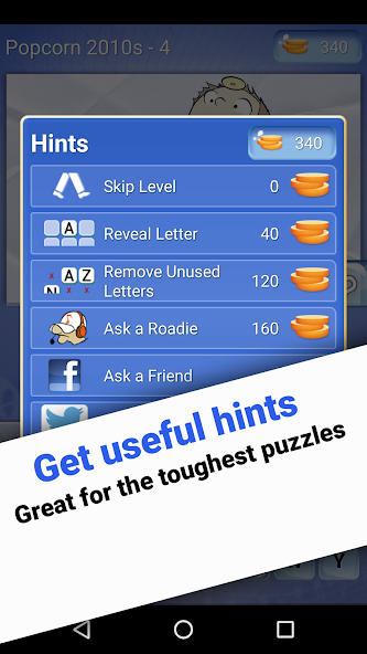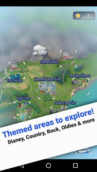 可惜这必须是一个“功能”。在您想要的时候玩我们的游戏,但是想要它。没有时间限制,状态栏上没有干扰,也没有让您的朋友前进。如果您擅长游戏,请免费玩!如果您想购买并提前解锁所有内容,也可以做到这一点。跳过级别是免费的,因此以任何您喜欢的顺序完成每个类别!当您喜欢一首歌时,还有一个提示系统。