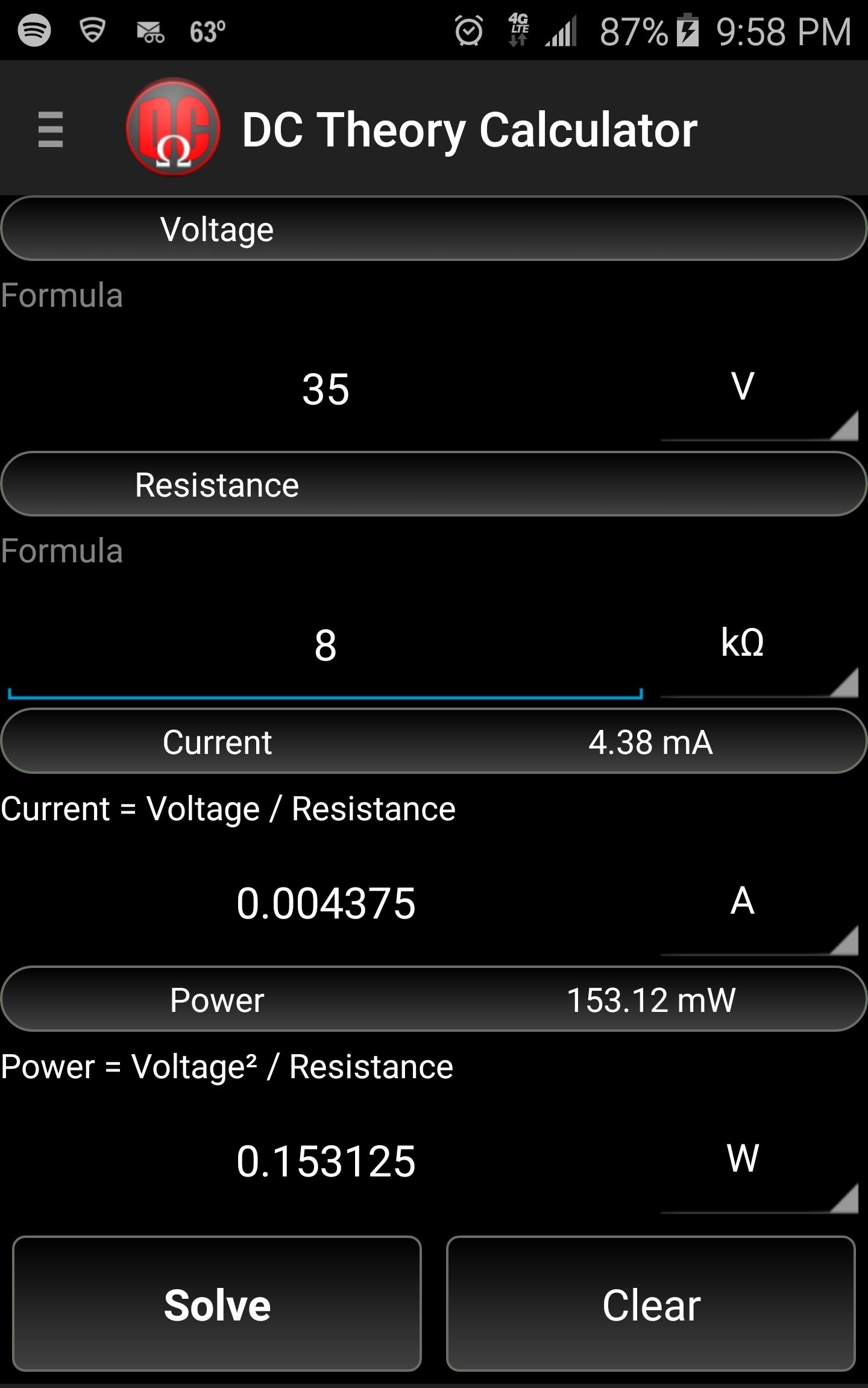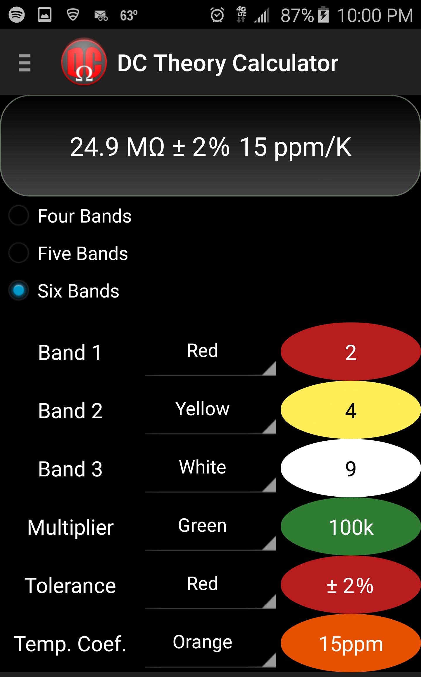 DC Theory Calculator是一個易於使用的電子學生和各個年齡段的愛好者。它將使用諸如歐姆定律等公式計算電壓,電阻,電流和電源。輸入任意兩個已知值(電壓,電阻,電流或功率),然後按計算。這兩個未知值將為您計算。該應用程序還將通過顯示所使用的實際公式來指導您自己的計算。