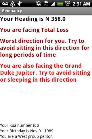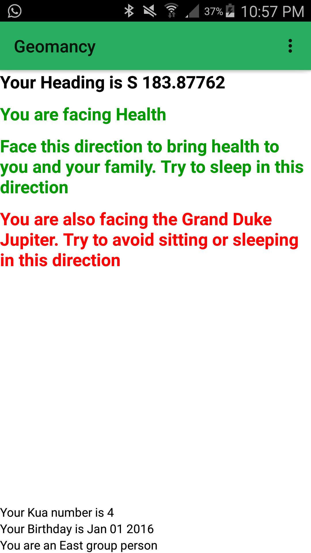 根據8台豪宅風水,此應用程序使用手機內置的指南針來告訴您您是否坐在好或壞的方向,具體取決於您的KUA號碼。如果您受到年度風水詛咒之一的影響,它也會警告您。