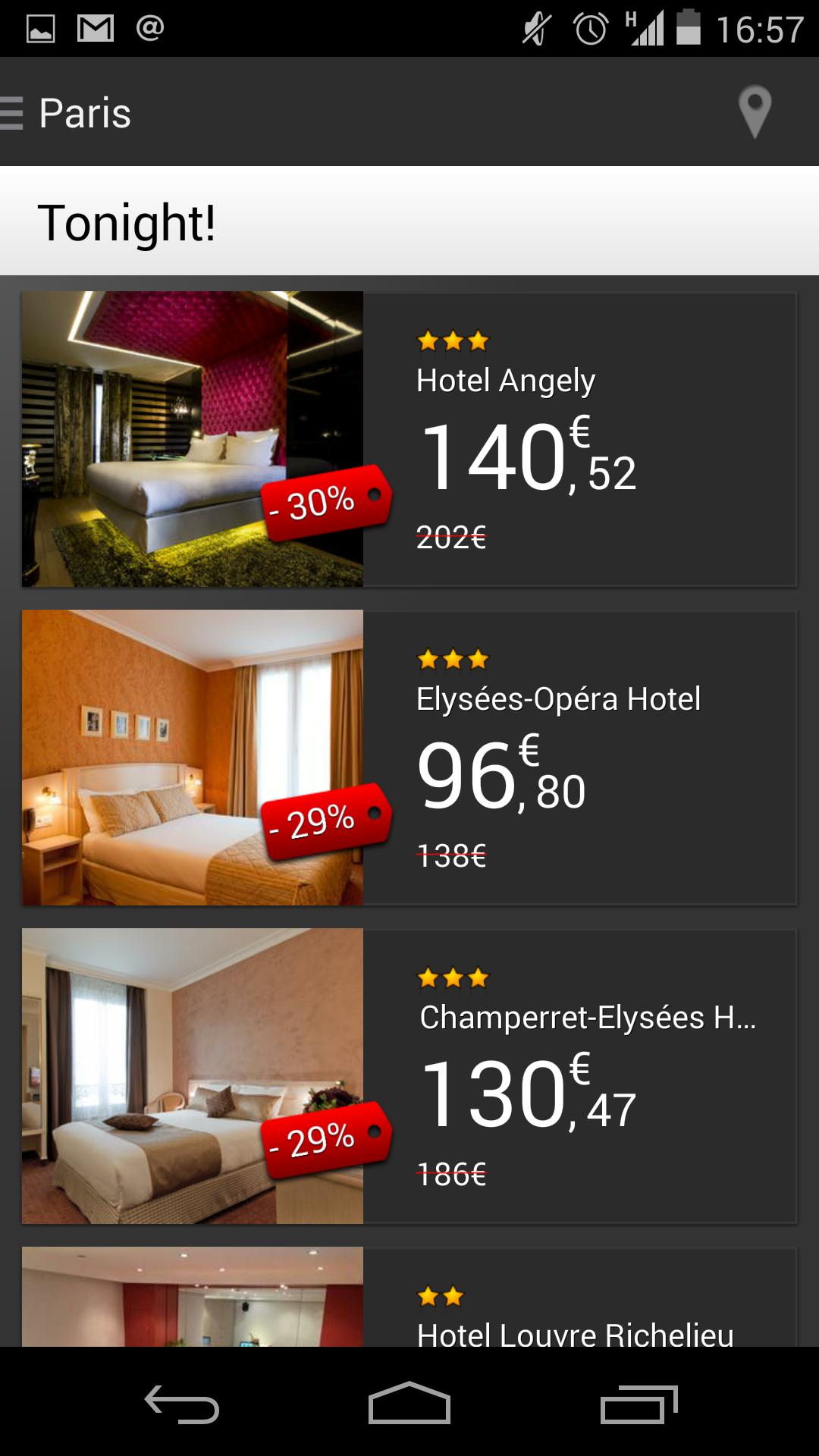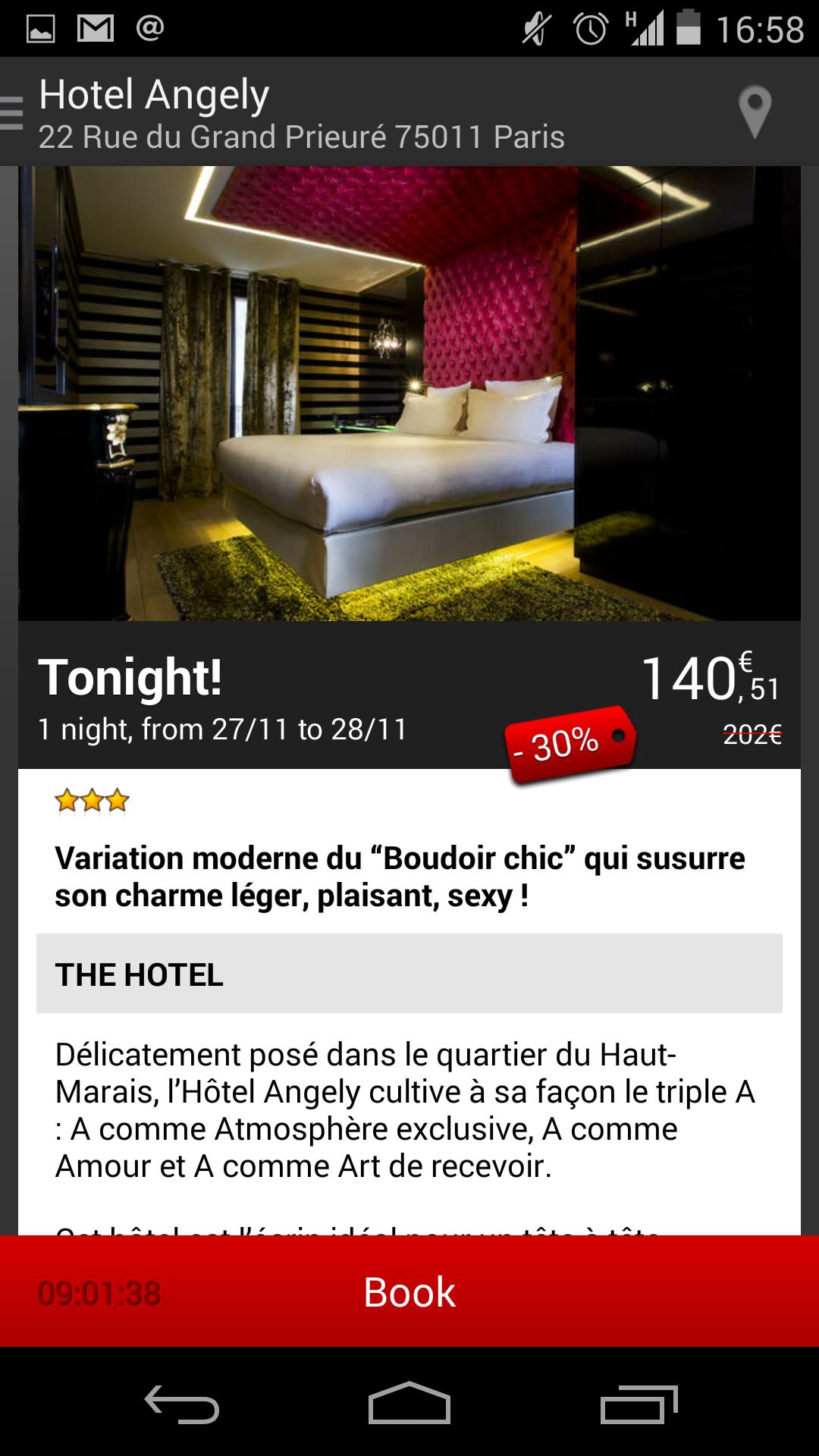 每天, VeryLastRoom ™都可以預訂當天的酒店房間,可在法國,西班牙和比利時享受高達70%的折扣。