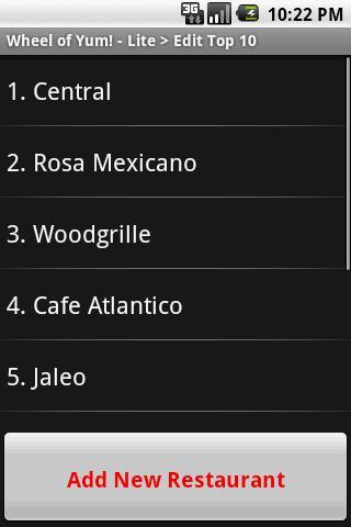 幫助您確定在最喜歡的15家餐廳清單中可以吃哪裡。您在喜歡吃的地方手動進入,然後旋轉百勝的輪子。簡單的。