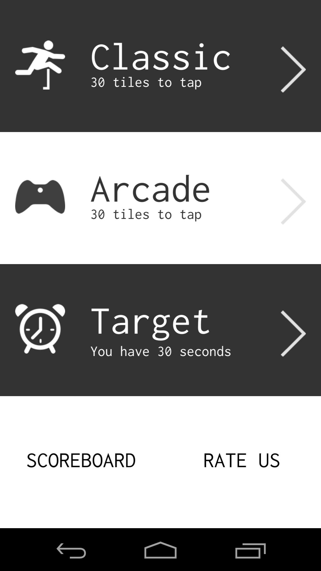 *經典模式:點擊30個黑色瓷磚,切勿在瓷磚上踩踏。您必須盡快完成所有瓷磚。