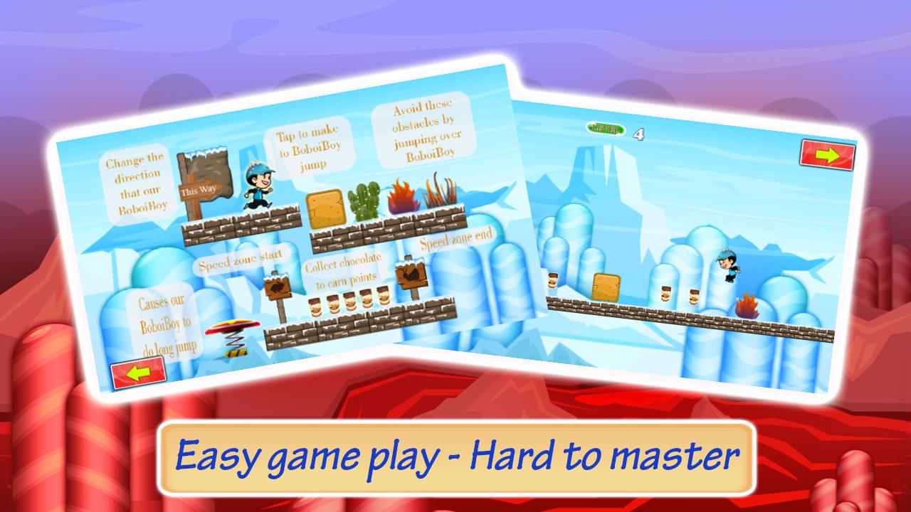 BoboyBoy Water Adventures是一款跑步遊戲,您需要越過不同的障礙,克服危險,同時收集盡可能多的巧克力才能得分最高。